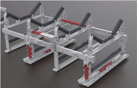 皮带自移支撑是工作面顺槽运输设备带式输送机与皮带机尾自移装置之间的过渡装置。能减少拆卸皮带机中间架的次数,满足快速推进的需要;同时具有调整胶带跑偏和校正皮带自移支撑推移方向的功能。还可以调节皮带机尾自移装置出入口带面的高度,保证顺槽运输的通畅和良好衔接。